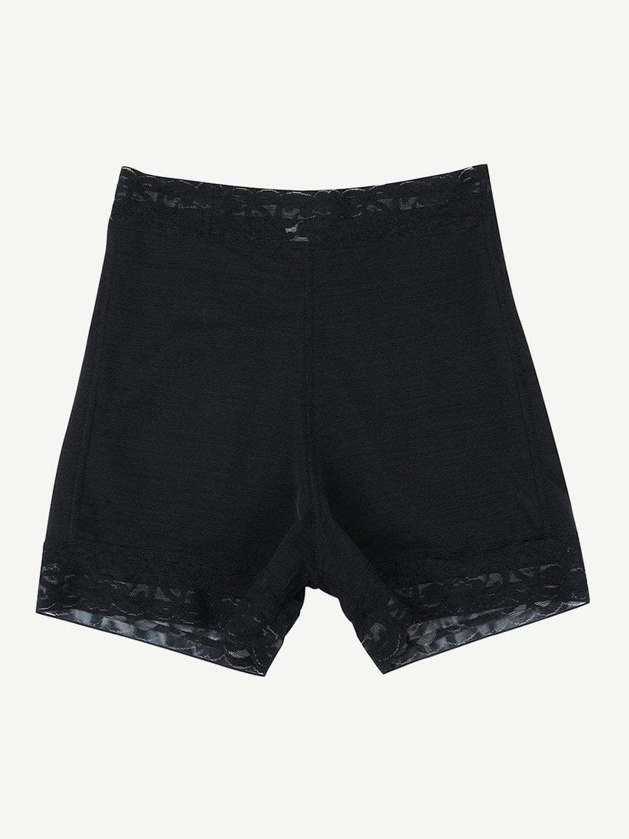 Four flexible anti-roll bones at the waist help prevent slipping and bunching, keeping the shaper securely in place. Lace trim with non-slip grip technology ensures the leg openings stay put while adding a soft, feminine finish.