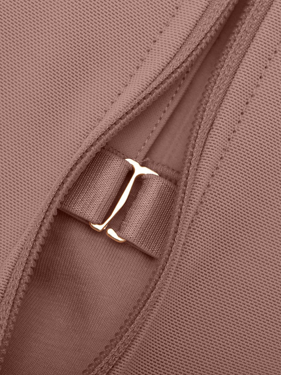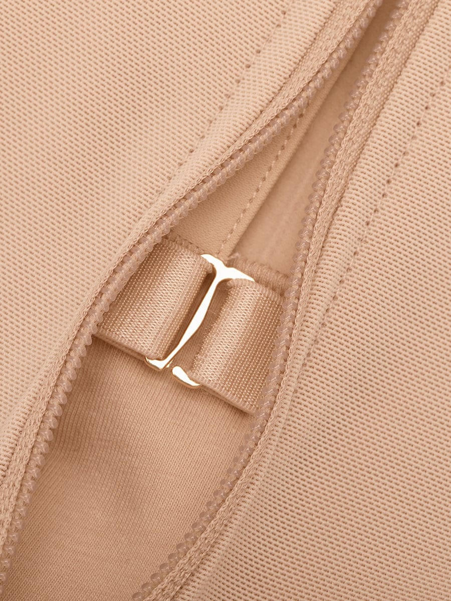 The U-shaped bust support structure gently gathers and lifts the chest while smoothing side bulges for a refined upper silhouette. Invisible butt-lift contouring enhances curves naturally, while double-layer leg panels help slim and shape the thighs. A cross-back design improves posture and smooths back fat for a beautifully sculpted finish.