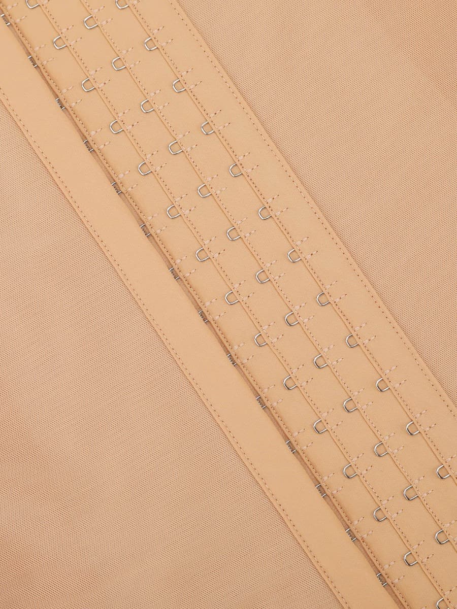 Triple-layer abdominal panels provide enhanced tummy control, while high-elastic sleeves contour the arms for a sleek finish. The free-cut cuff design allows you to customize sleeve length for a personalized fit. Four front hook-and-eye closures let you adjust compression as needed, and removable, adjustable straps offer extra lift and styling flexibility.