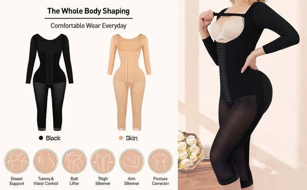 A high-compression recovery shaper designed to support the bust, sculpt the waist, shape the arms, and lift the curves — all in one streamlined piece. Featuring a U-shaped front neckline, this shaper gently gathers the bust while helping reduce underarm bulges for a smoother upper silhouette.