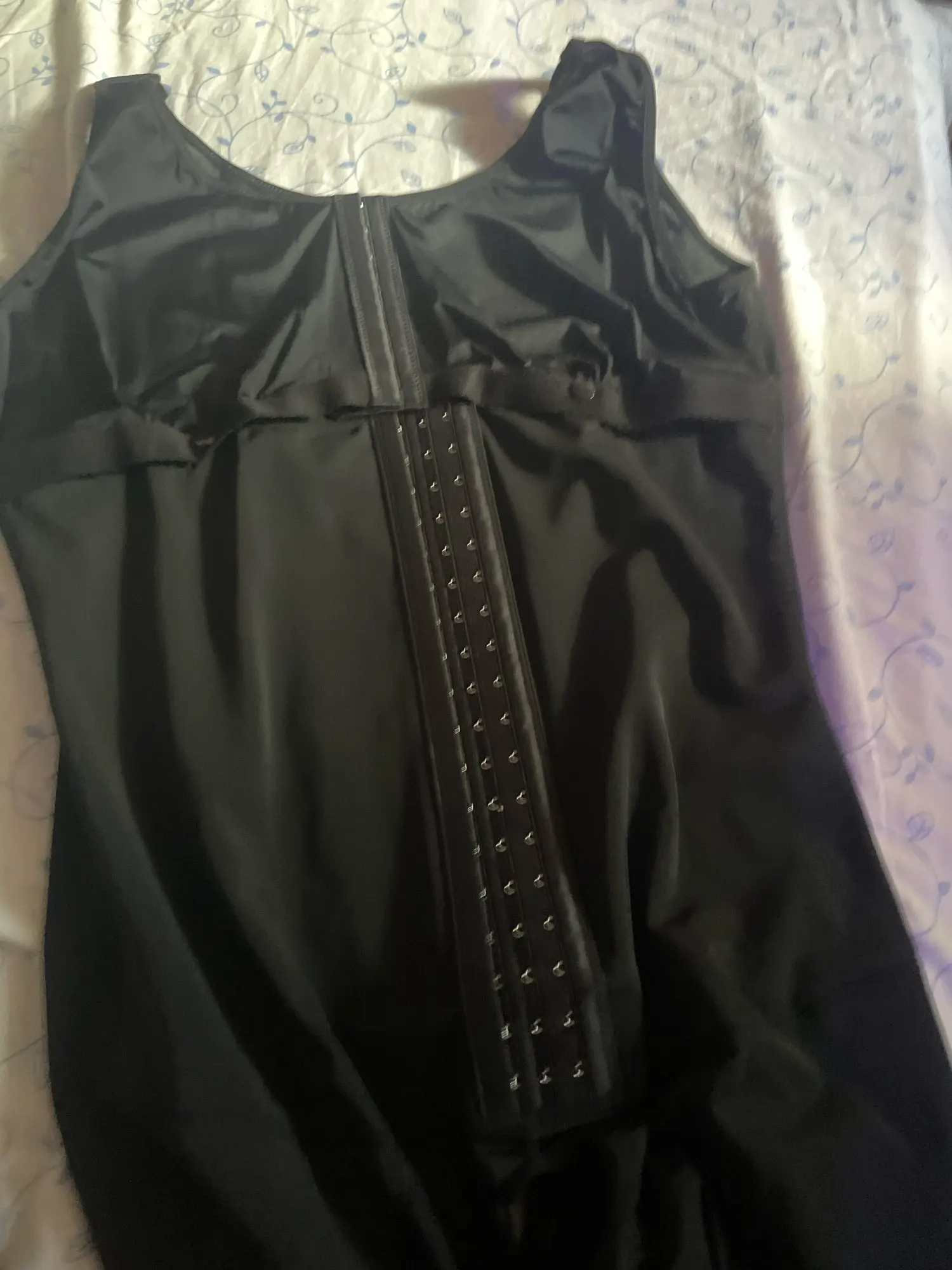 Three rows of hook-and-eye closures allow for customizable compression, while the open-bust design provides supportive side shaping. Finished with an elastic under-bust band for added lift and an overlapping gusset for easy bathroom access — this piece is thoughtfully designed for post-op wear, everyday shaping, or both.
