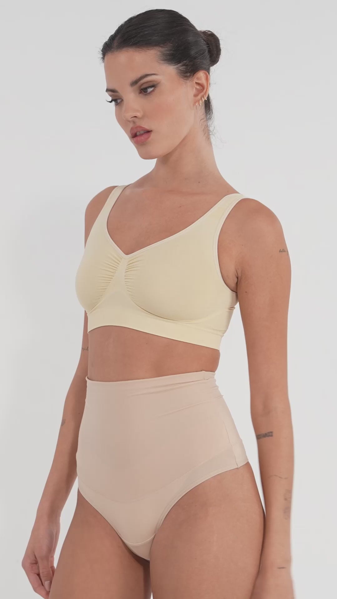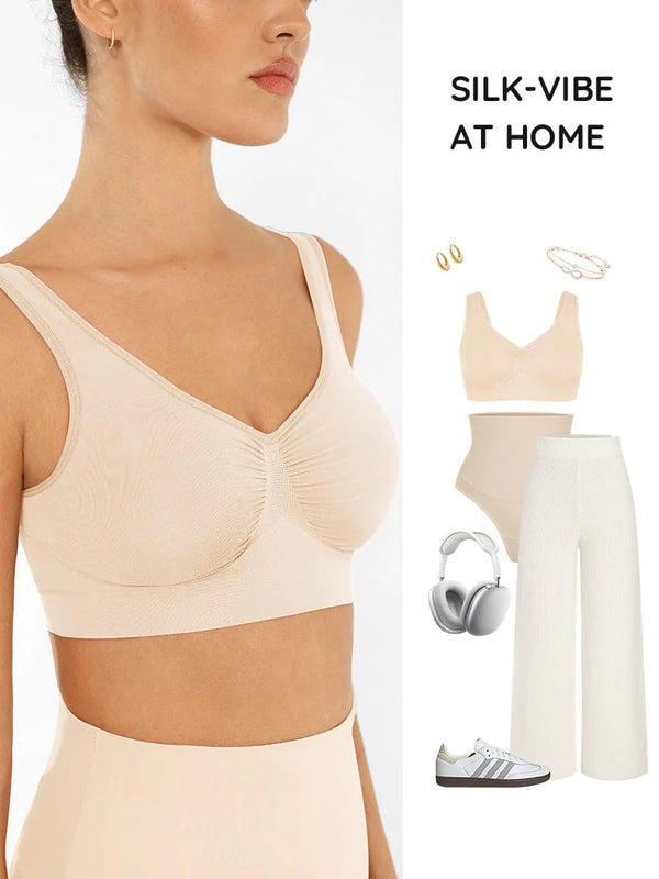 A buttery-soft seamless bra designed for everyday comfort and natural support. Featuring a softly structured under-bust panel for gentle lift and hold, this bra adapts comfortably to different bust shapes while maintaining a smooth, second-skin feel.
